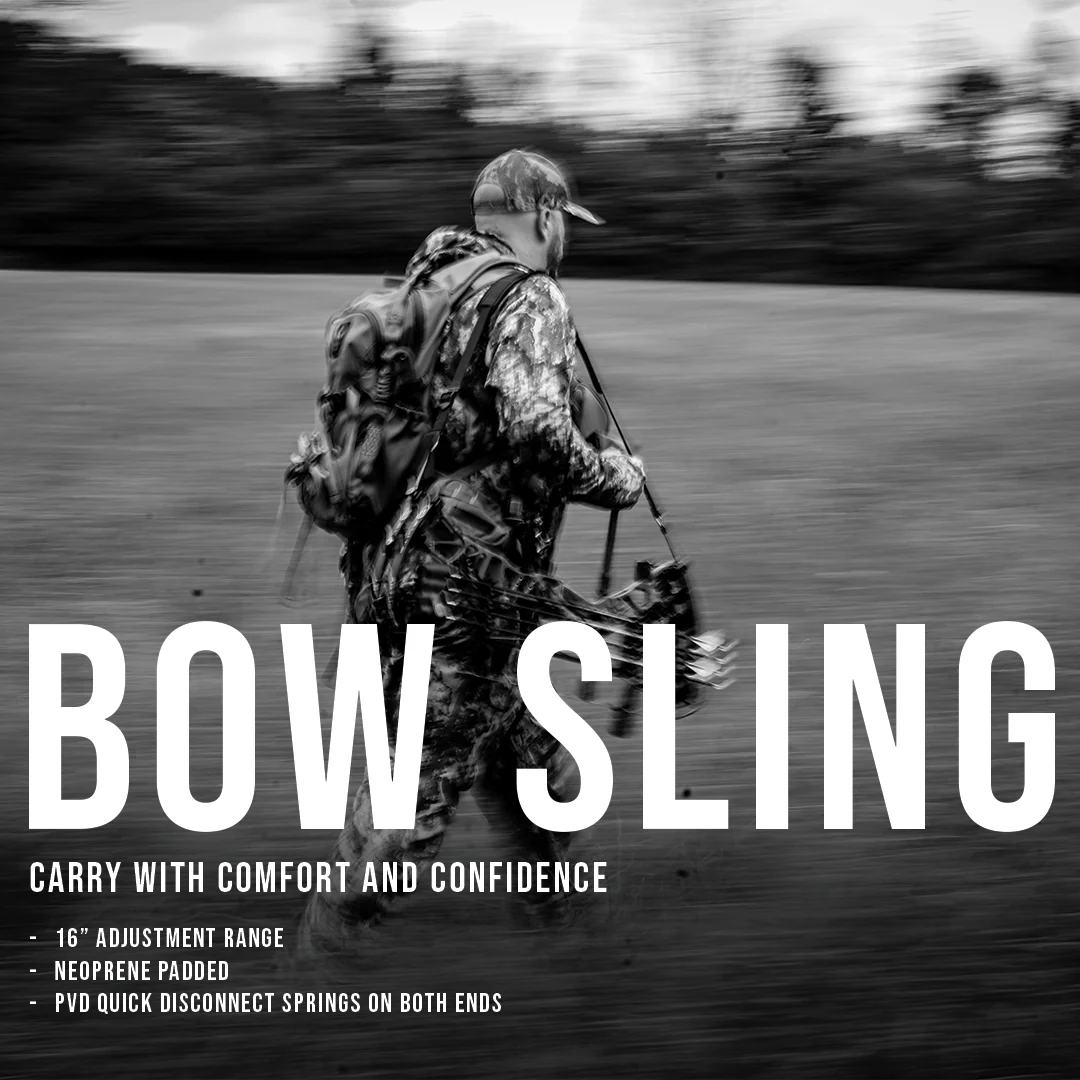 The Elite RAC Bow Sling provides comfortable and secure bow transport for archers on the go. Designed with a neoprene padded sling, it ensures cushioned support and reduces shoulder fatigue during long treks. Equipped with two 1oz RAC attachable quick disconnect cleats and PVC-coated quick disconnect springs on either end, it seamlessly integrates with the RAC system for versatile use. With 16 inches of adjustment range, the sling can be customized to your preferred length, making it a practical choice for any hunting trip.